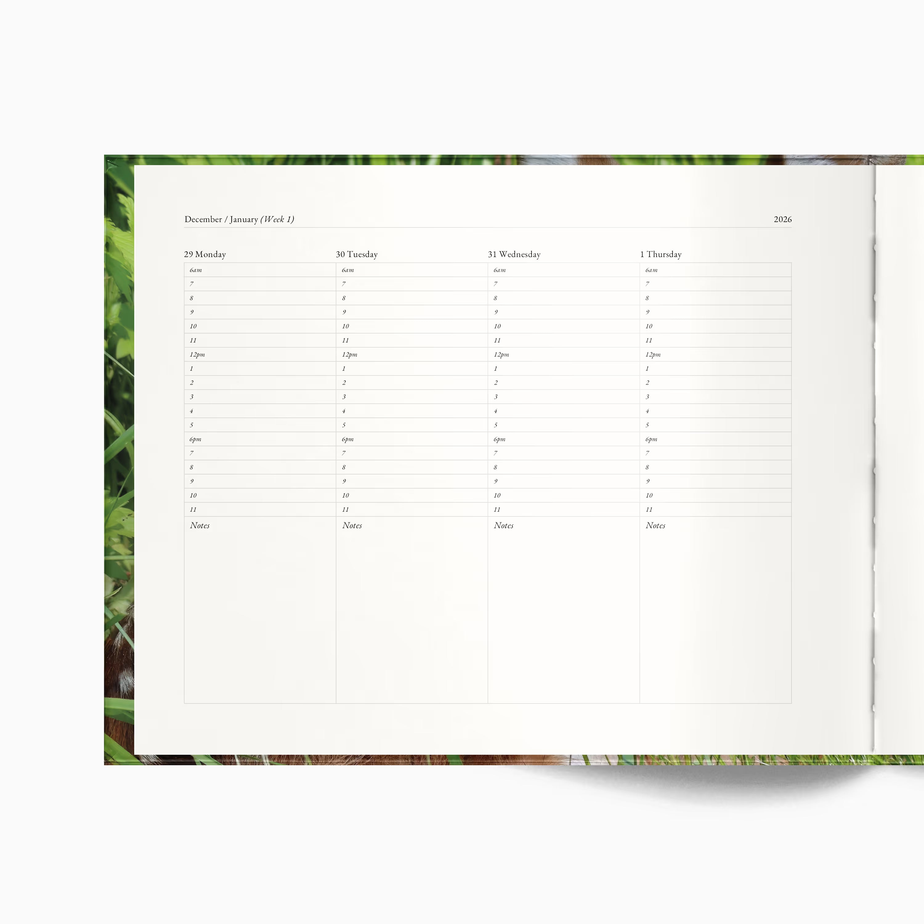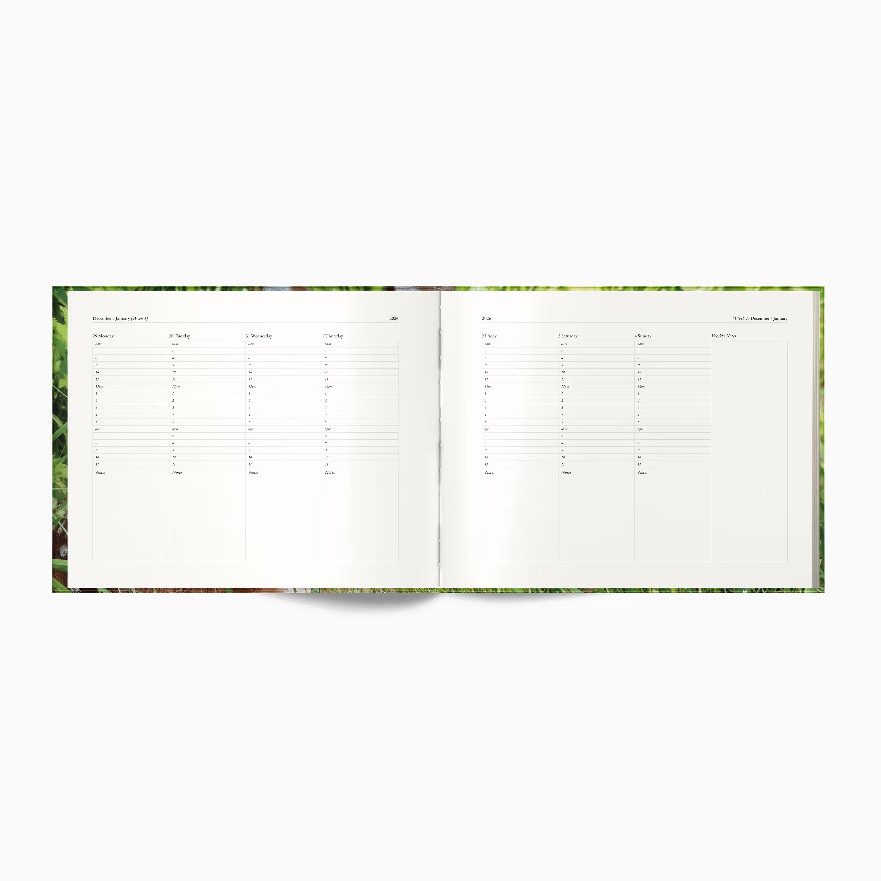 Our dated planners feature a weekly layout designed for hour-by-hour scheduling. Includes yearly and monthly overviews for added organization. Paper is FSC certified, lead-free, acid-free, buffered, and made from wood-based pulp.