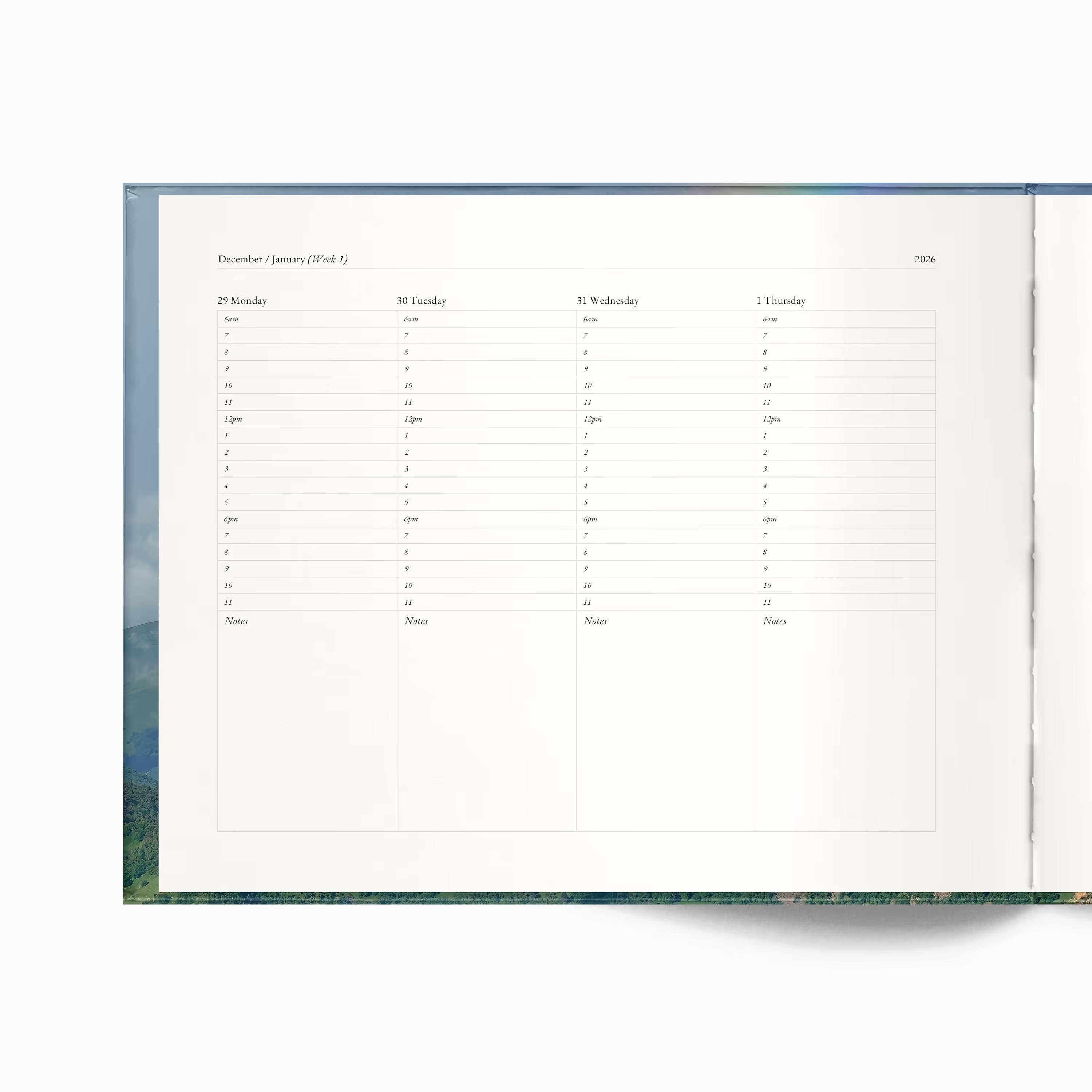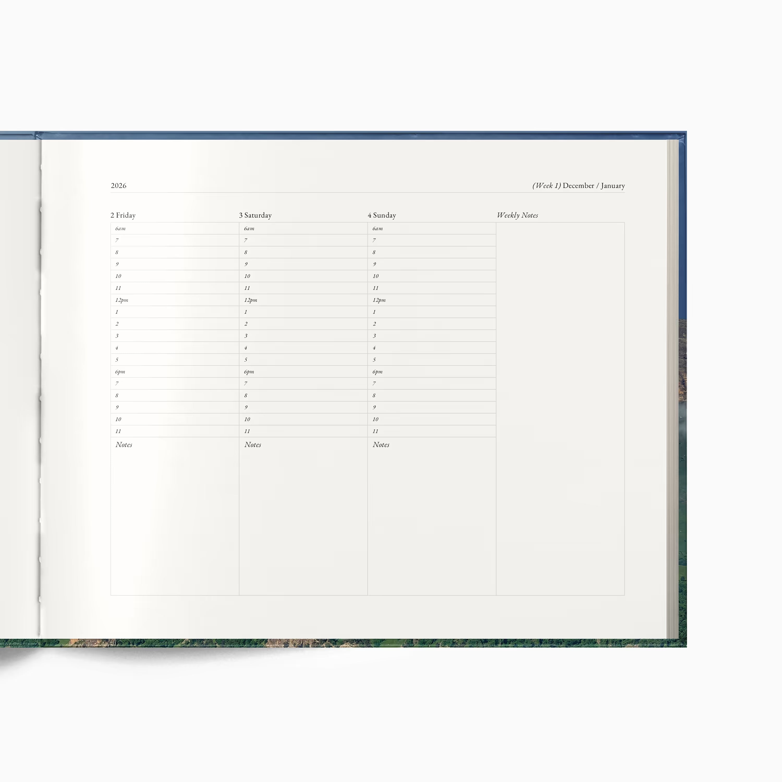 Our dated planners feature a weekly layout designed for hour-by-hour scheduling. Includes yearly and monthly overviews for added organization. Paper is FSC certified, lead-free, acid-free, buffered, and made from wood-based pulp.